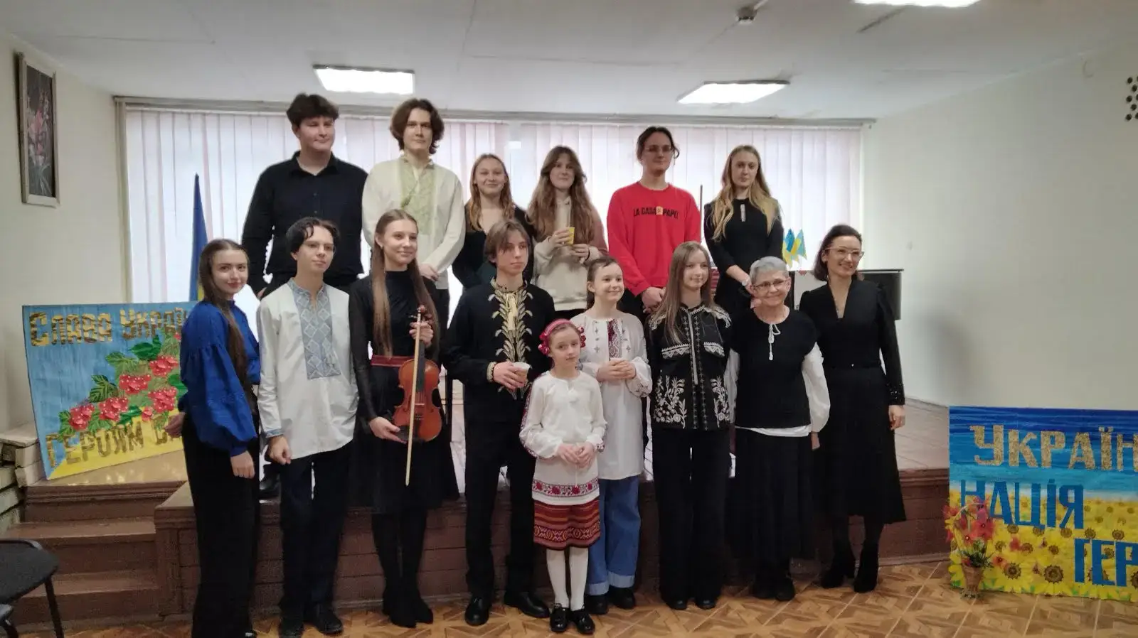 Музичні твори, ілюстровані патріотичними поетичними рядками створили в залі емоційну атмосферу єднання, соборності, гордості за власну країну і її сучасних українців.