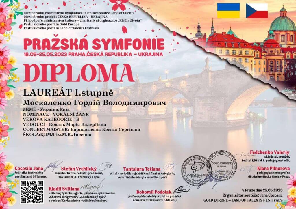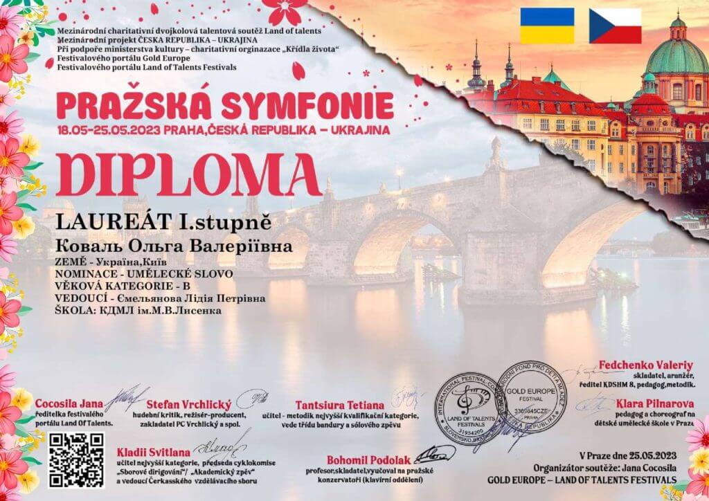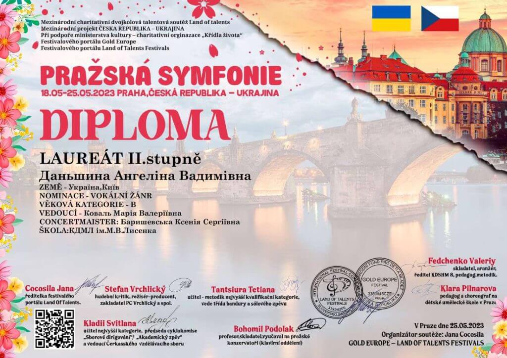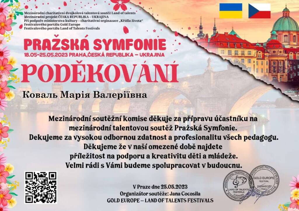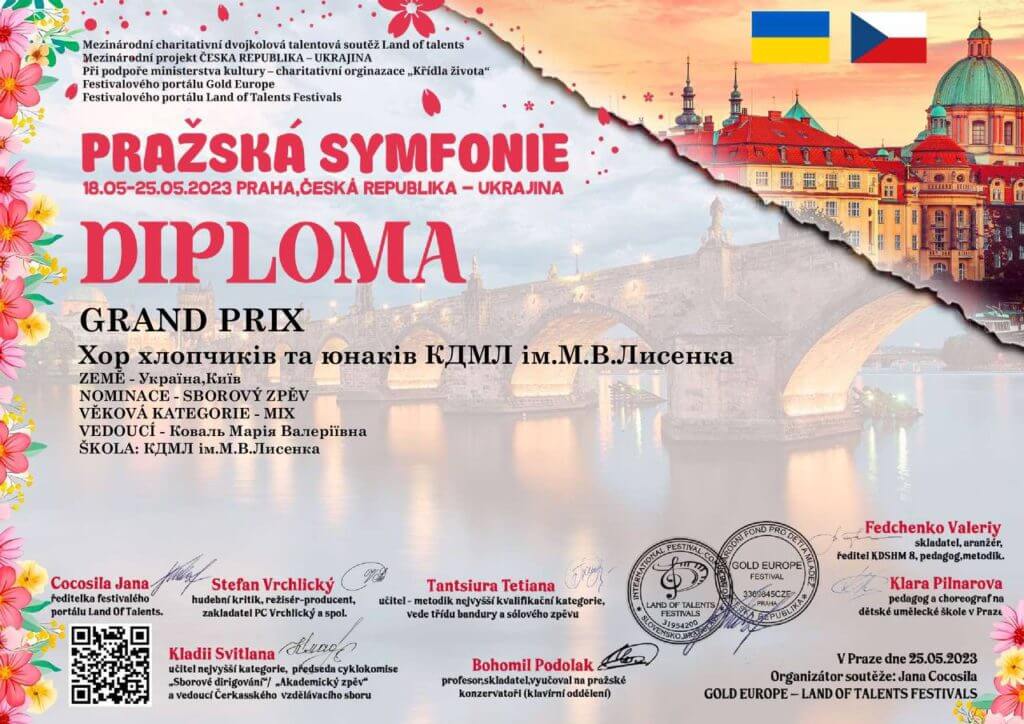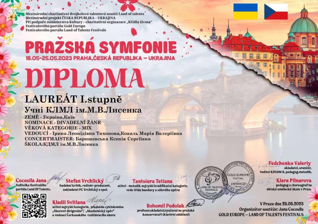 18 травня 2023 року у місті Прага відбувся Міжнародний благодійний конкурс мистецтв «Празька симфонія», на якому Ліцей представила ціла плеяда учнів у різних номінаціях.