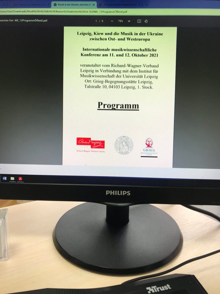 Директор КДМЛ ім.М.В.Лисенка, доктор наук, професор Волков Сергій Михайлович 12 жовтня 2021 року взяв участь у Міжнародній Zoom-конференції “Лейпциг, Київ та музика в Україні між Східною та Західною Європою”, яка відбулася у місті-побратимі Києва – Лейпцигу. В своїй доповіді С.Волков звернув увагу учасників конференції на роль і місце випускників КДМЛ ім.М.В.Лисенка в створенні музичного міжкультурного простору, взаємовпливи німецької й української культури.