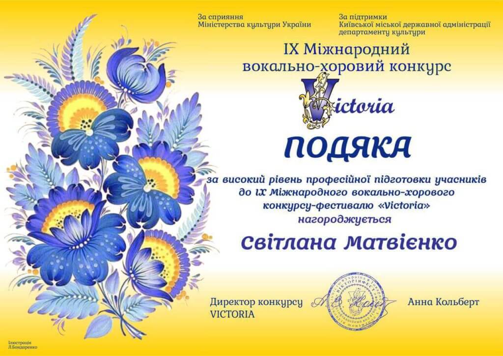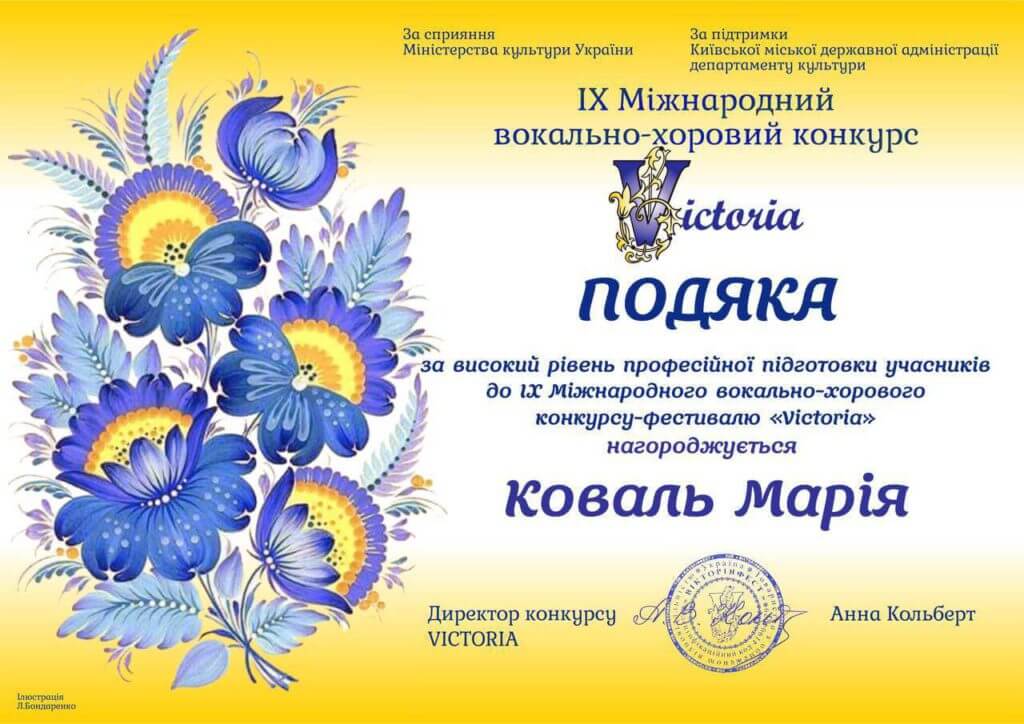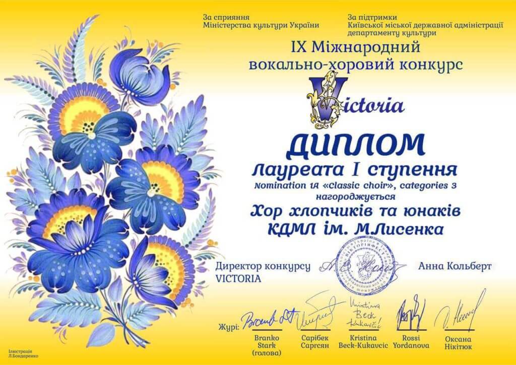 Наприкінці січня 2023 року Хор хлопчиків та юнаків КДМЛ ім. М.В. Лисенка став Лауреатом І ступеня IХ Міжнародного дистанційного вокально-хорового конкурсу-фестивалю «Victoria» в номінації «Classic choir» у третій категорії. Журі конкурсу також відзначило високий рівень професійної підготовки хористів художньою керівницею і диригенткою Марією Коваль та концертмейстером хору – Світланою Матвієнко.