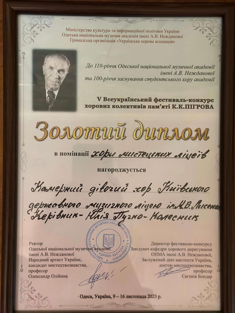З яскравою програмою та на високому професійному рівні виступив та здобув 1 місце (Золотий диплом) Камерний дівочий хор Київського державного музичного ліцею ім.М.В.Лисенка.